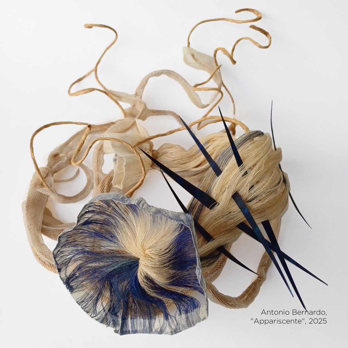 Nelle fibre intrecciate, nei fili annodati, nei gesti ripetuti della mano che crea, il desiderio prende corpo, diventa visibile. È il respiro dell’artista che si fa materia, è l’eco di un’emozione che cerca forma.