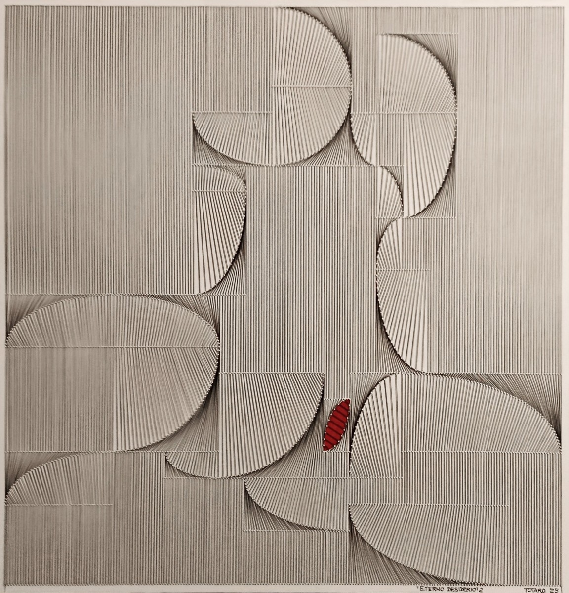 Con Matrici dello spazio – Filo. Forma. Tensione, l’Archivio entra in connessione con l’artista Mimmo Totaro, figura di rilievo della fiber art italiana. La mostra presenta un nucleo significativo di opere che ripercorrono l’intero arco della sua attività e che si manifestano attraverso molteplici forme espressive. Il legame interno alla produzione poliedrica di Totaro è un profondo amore per la materia tessile, che si traduce soprattutto nella presenza dei fili tesi che attraversano e definiscono le opere; fili che, anche quando perdono tridimensionalità e si trasformano in segni grafici, continuano a generare vibrazioni visive che oscillano, si sovrappongono e fanno vacillare i confini tra astrazione e percezione. I rapporti spaziali che si creano hanno tutto il sapore dell’architettura, la “terza arte” e altro grande amore di Totaro.